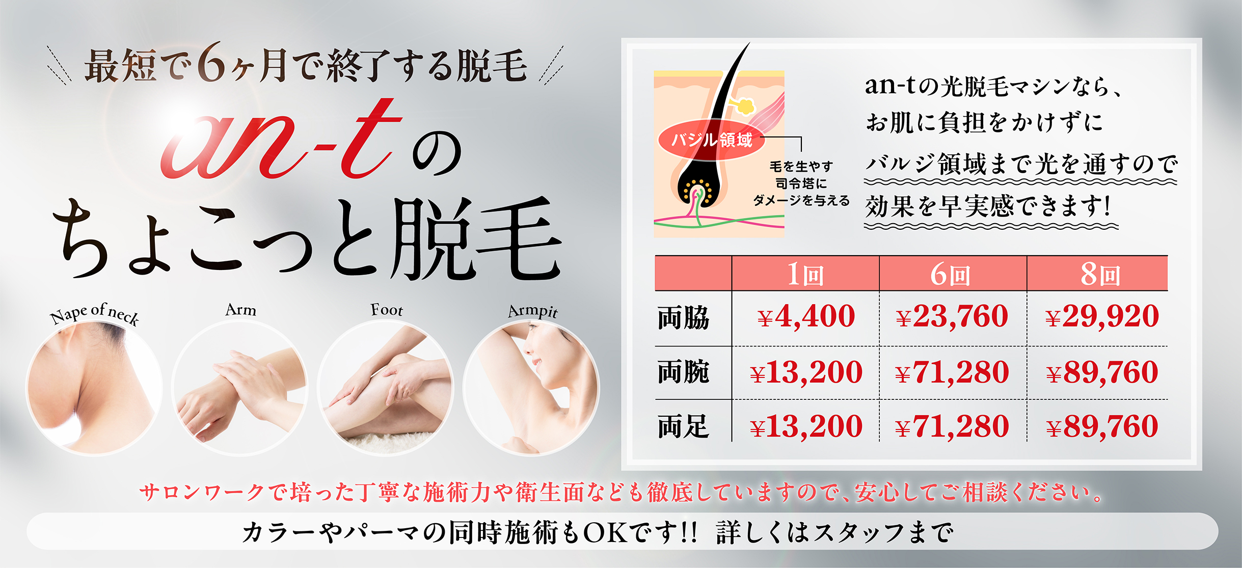 広々としたゆとりあるサロン空間で、お客様の貴重なお時間を大切にゆっくりとしていただけます。高品質なヘアデザインとおもてなしをお客様にお届けします。それがアンティブランシェの使命と考えます。お客様ひとりひとりのご満足をお約束する「ご要望にお応えする」「幸せの瞬間」をアンティブランシェで是非お楽しみください。